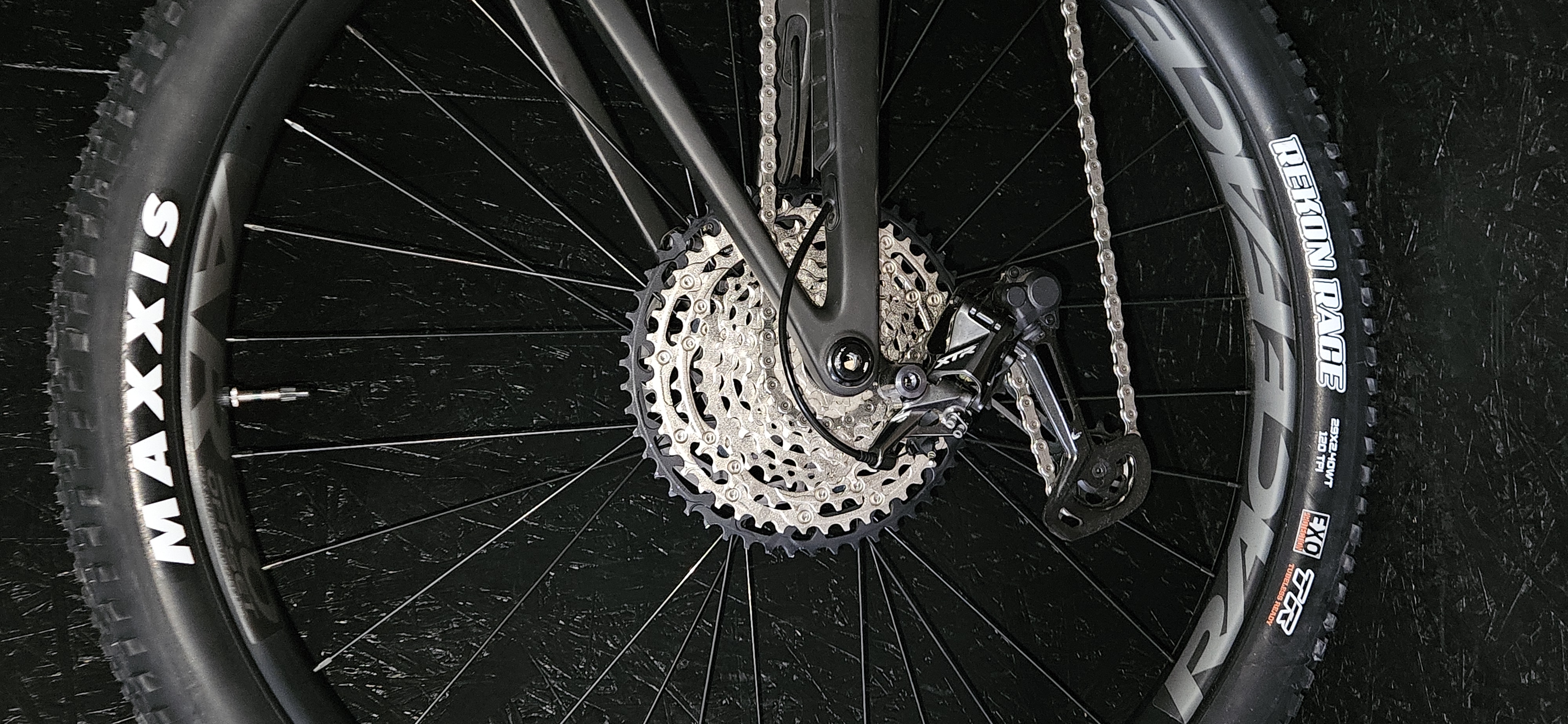 Celokarbonový rám Orbea OIZ OMX se zdvihem 120mm. Fox Factory 34 120mm. Teleskopická sedlovka, Výbava Shimano XTR/XT ,převody 1x12s 32/10-51z. Karbonová kola , náboje DT Swiss.Třípolohové ovládání vidlice ,tlumiče a sedlovky na jedné objímce.