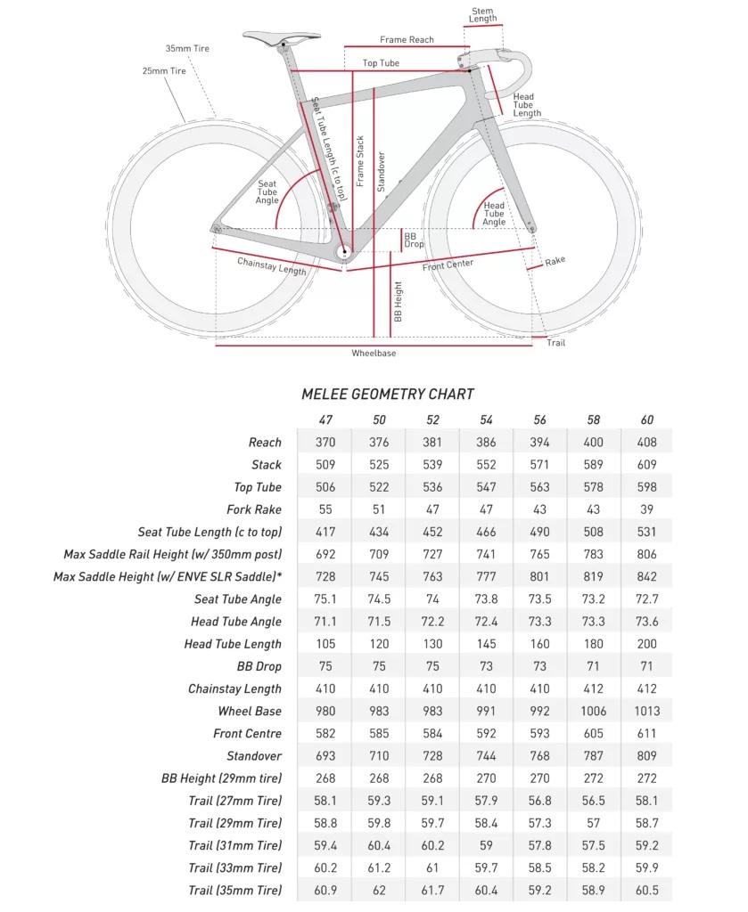Díky geometrii a ovladatelnosti optimalizované pro pneumatiky o šířce 27 až 32 mm je Melee moderní silniční kolo navržené tak, aby poskytovalo výkon, který soutěživí jezdci vyžadují. Melee splňuje všechny důležité požadavky – efektivní přenos výkonu, hmotnost, aerodynamika a všestrannost. Aby bylo dosaženo všestrannosti, kterou dnešní silniční závodníci vyžadují, Melee poskytuje jezdcům až 35 mm prostoru pro pneumatiky.
