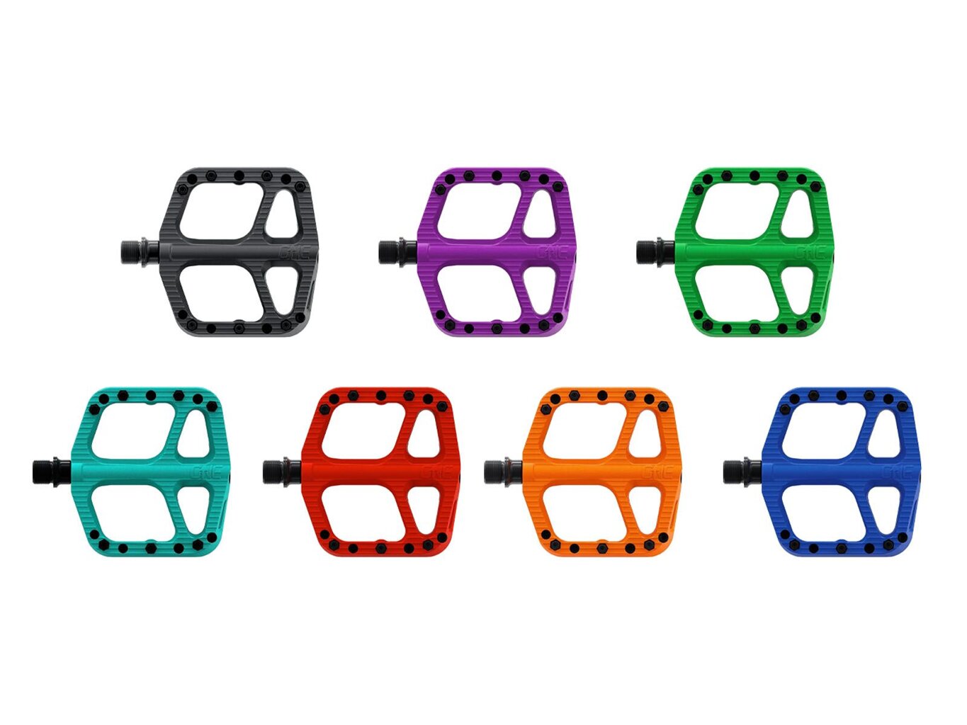 Odolné, jisté a lehké pedály. Velká nylon/kompozitová platforma, výměnné piny a konkávní profil působí pod botou velmi přirozeně a jistě.