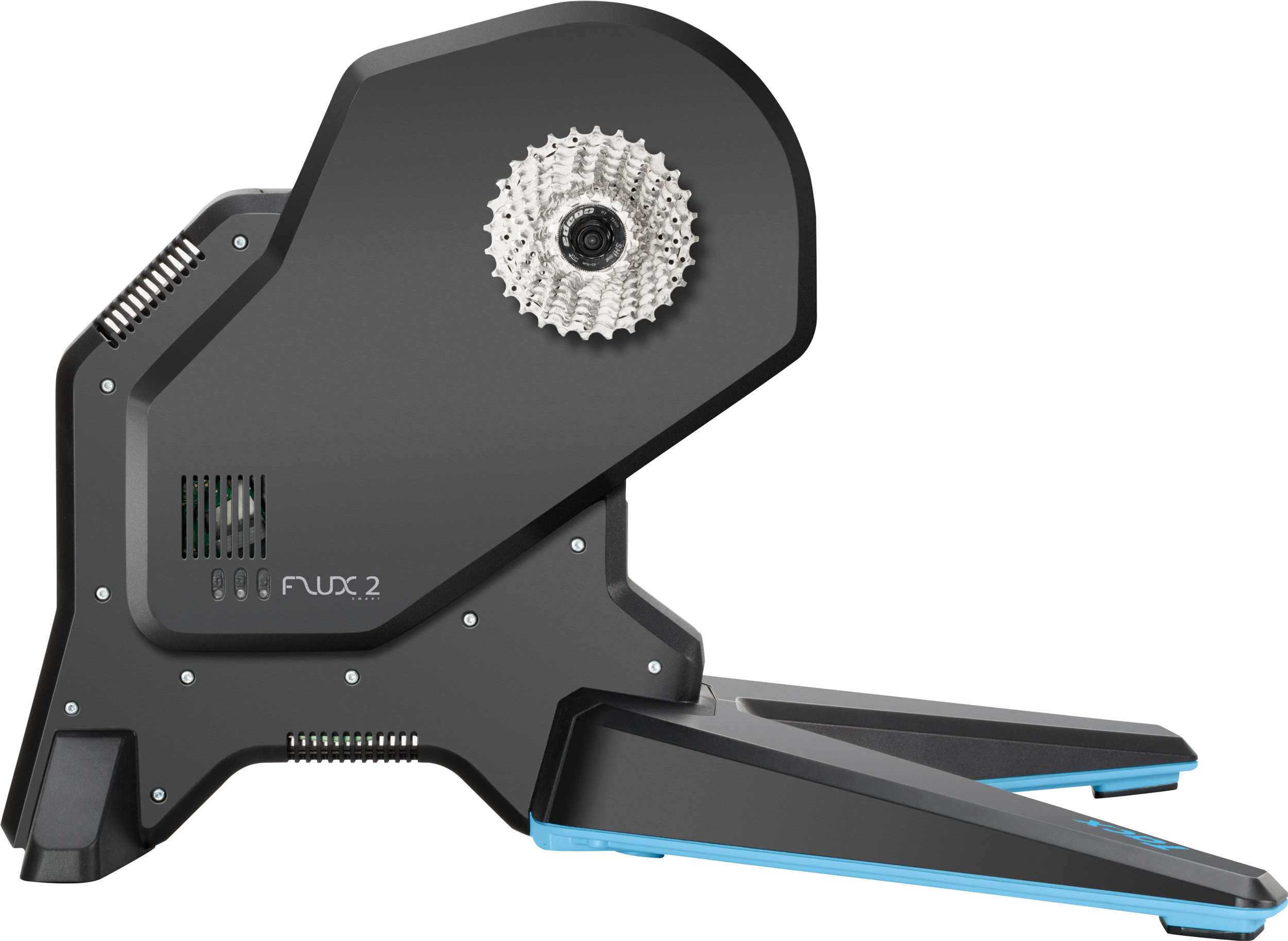 Stabilní konstrukce - Dokonale vyvážená konstrukce a velké půdorysné rozměry trenažéru FLUX 2 Smart zajišťují maximální stabilitu i při nejvýbušnějším spurtu s výkonem až 2.000 W.